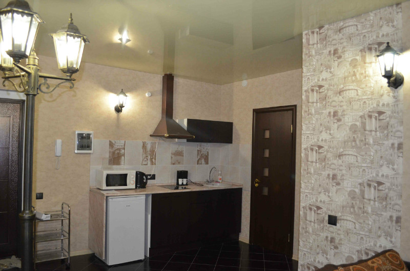 Кухня студийного типа, есть вся необходимая техника.