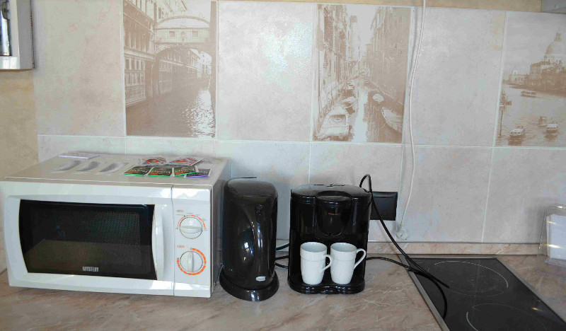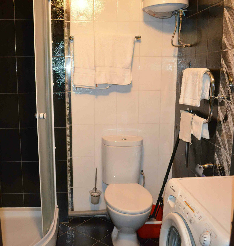 Удобства: Микроволновая печь, Кофеварка, Холодильник, Столовые приборы, Электрочайник, Душевая кабина, Телевизор, Кондиционер, Стиральная машина